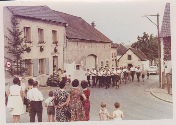 Das Foto vom Festzug Musikfest 1964 zeigt ganz oben die Dreifaltigkeitskapelle.