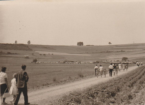 Auf Foto 5 zieht der Festzug an dem Gelände vorbei, wo später der Sportplatz gebaut wurde.