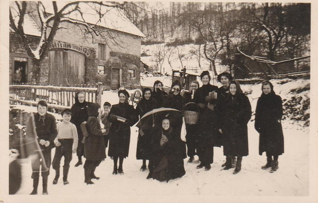 Bild von etwa 1943 von links Michael und Josef Mertes (Linats), Josef Schneider (Schomarisch) und Alfred Schneiders (Käthe)