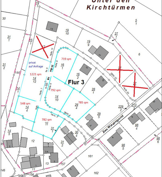 Verkauft sind die mit X gekennzeichneten Grundstücke.