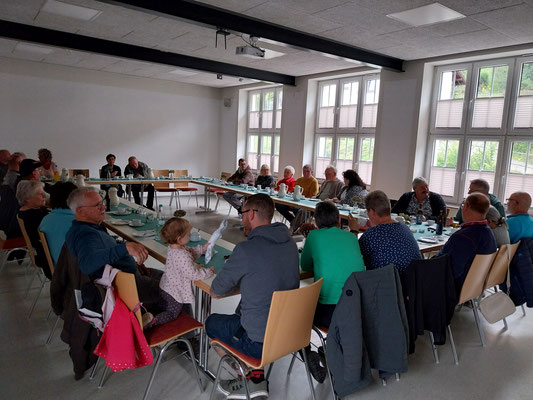 Der Einladung dazu sind etliche gefolgt und so konnte ein schöner Tag mit netten Gesprächen, gutem Essen und ebenso guten Getränken gemeinsam verbracht werden. OB Harbecke stellte bei seiner kurzen Begrüßungsrede dar, dass die Finanzierung dieses Tages rein aus Spenden erfolgte und die Kassen der Ortsgemeinde erfreulicherweise nicht belastet wurden. Alle Helferinnen und Helfer haben mit ihren geleisteten Arbeitsstunden zum Wohle unseres Dorfes beigetragen und die errechnete Summe der Stunden hätte einem Gemeindediener bisher schon weit über 5000 Euro eingebracht. Auch dafür hatten sich alle diesen Tag verdient